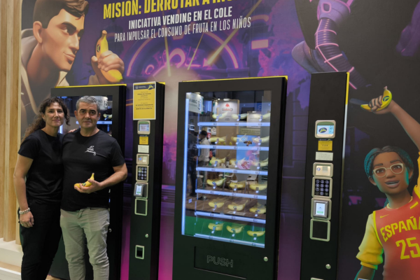 Convencidos de que el comercio de barrio da vida a las ciudades, Manuel y Pili también defienden una alimentación sana y sostenible. Por eso colaboran activamente con Plátano de Canarias en un proyecto pionero: “Innovación con propósito: las nuevas máquinas de vending saludable”, presentado en Fruit Attraction 2025. Una iniciativa que combina tecnología, sostenibilidad y educación nutricional. Tanto Manuel como Pili trabajan en este proyecto con muchísima ilusión, acercando de otra forma, el sabor de Canarias a los consumidores. ¡Muchas gracias por su apoyo!